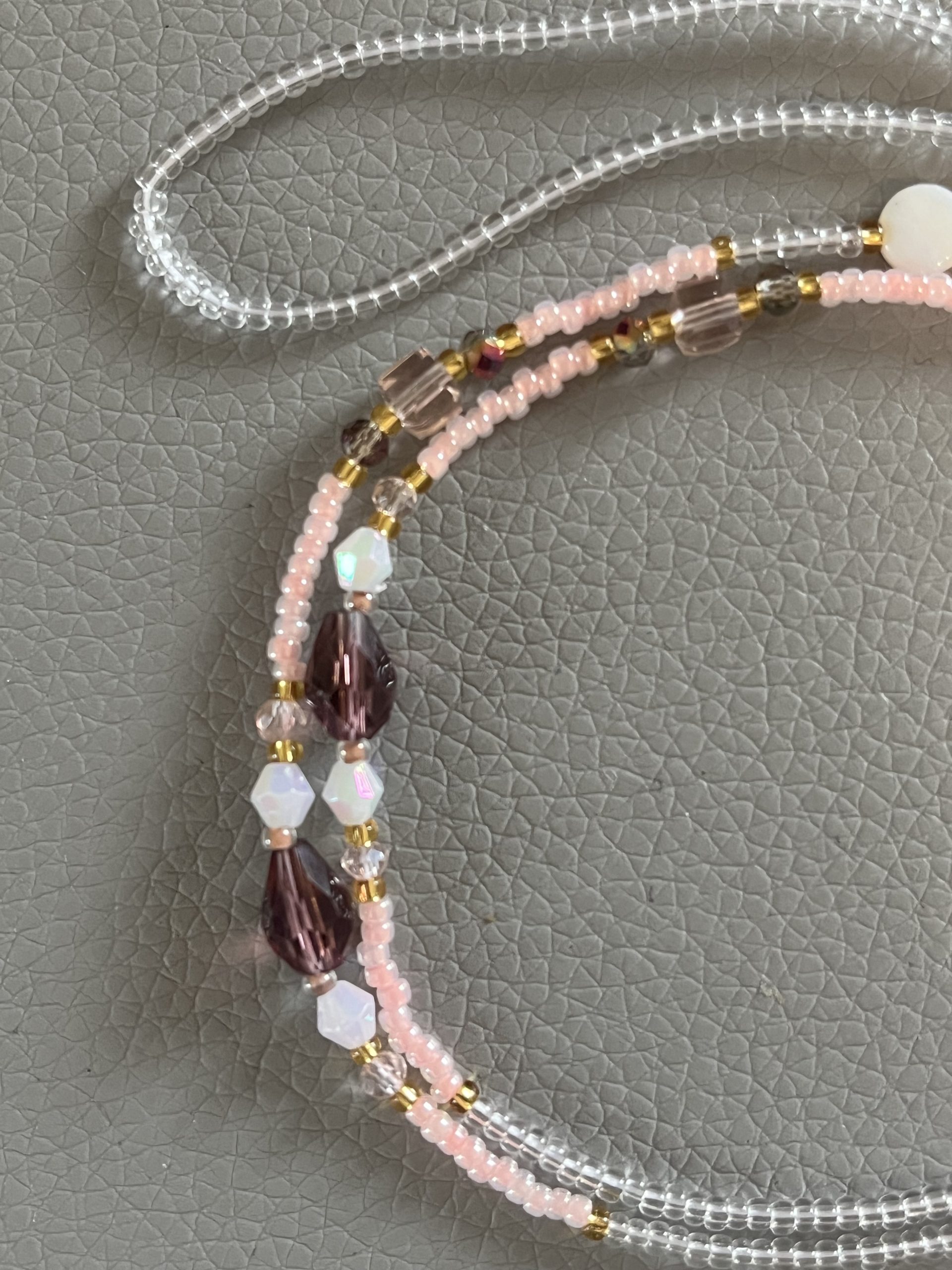 Réalisé à la main dans mon atelier du Sud de la France, il est composé de perles de verre fines et lumineuses, montées sur un fil très solide pour garantir résistance et durabilité.